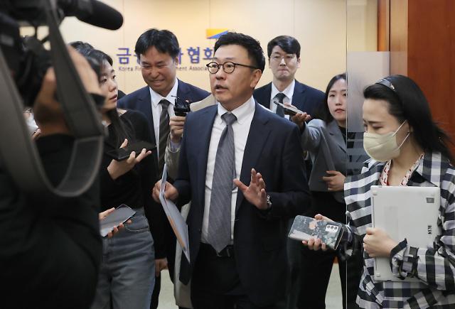 황현순 키움증권 사장이 28일 여의도 금융투자협회에서 금융감독원 주최로 열린 증권업계 사장단 간담회를 마치고 취재진의 질문을 받고 있다. [사진=연합뉴스]