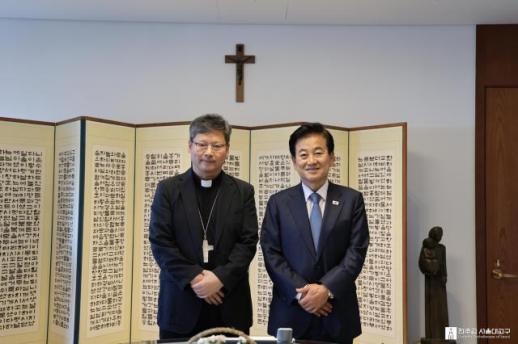 정순택 대주교, 정동영 통일부 장관 접견 "대화는 평화 첫걸음" 천주교 서울대교구장 정순택 대주교는 23일 오전 서울대교구청 교구장 접견실에서 정동영(세례명 다윗) 통일부 장관을 접견하고 한반도 평화와 교류 재개의 필요성 등에 대해 의견을 나눴다. 정 대주교는 정 장관의 취임을 축하하며 “한반도의 평화와 화해를 위해 애써주심에 감사드린다”고 말했다. 이어 “통일부가 추진하는 평화 정책에 교회도 민족의 화해와 일치를 위해 꾸준히 기도하고 동행하고 있다”고 전했다. 또한 교구 민족화해위원회의 설립 배경을 소개하며 “1995년 김수환 2025-10-23 17:38:11 -