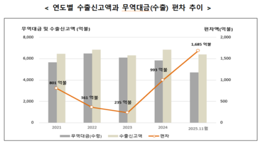 [속보] 1월 초순 수출 2.3% 감소…무역수지 26.6억 달러 적자 1월 초 수출액이 1년 전보다 2% 넘게 감소한 가운데 수입액이 수출액을 웃돌면서 무역 수지도 적자를 기록했다. 관세청은 1월 1~10일 수출액이 155억5200만 달러로 전년 동기 대비 2.3% 줄었다고 12일 밝혔다. 같은 기간 수입액은 182억1400만 달러로 1년 전보다 4.5% 줄었다. 이에 따른 무역수지는 26억6300만 달러 적자다. 2026-01-12 09:00:00 -
