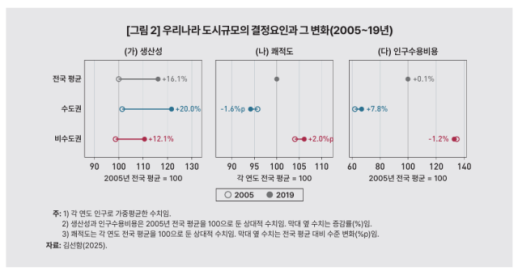 KDI "균형발전정책 30년째 공회전…거점도시 생산성 끌어올려야" 한국의 수도권 인구집중 현상은 1970년 이후 반전되지 않고 이어지고 있다. 역대 정부들은 이를 해소하기 위해 30년간 균형발전정책을 시행해왔으나 인구집중을 유발하는 힘은 이를 압도해왔다. 이에 생산성 제고라는 구체적인 목표를 세우고 대상 지역을 선별해 자원을 집중적으로 투입해야 한다는 제언이 나온다. 한국개발연구원(KDI)가 20일 발표한 '수도권 집중은 왜 계속되는가' 보고서에 따르면 2019년 이후 우리나라의 인구 50% 이상은 수도권에 거주하며, 서울의 인구는 2024년 기준 930만명에 달한다. 2026-01-20 12:00:00 -