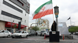 12일 테헤란 시내서 이란 국기 들고 있는 여성