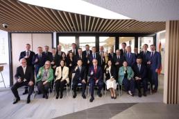 정동영 통일부 장관이 25일 주한 EU 대표부의 초청으로 EU 회원국 대사 정례모임에 참석해 기념 촬영을 하고 있다.
