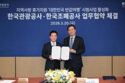 한국관광공사는 20일 공사 서울센터에서 한국조폐공사와 '지역사랑 휴가지원 시범사업(대한민국 반값여행)' 활성화를 위한 업무협약을 체결했다고 23일 밝혔다.