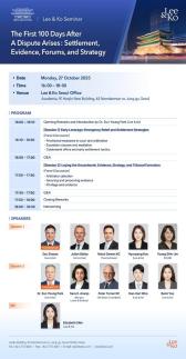 법무법인(유) 광장(대표변호사 김상곤)이 오는 27일 오후 4시 서울 중구에 위치한 광장 신관 1층 아카데미아실에서 ‘국제분쟁 발생 직후의 100일: 화해, 증거, 포럼과 전략(The First 100 Days After A Dispute Arises: Settlement, Evidence, Forums, and Strategy)’을 주제로 세미나를 개최한다고 23일 밝혔다.