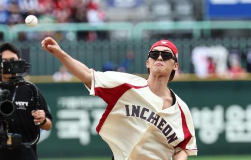 지난 9일 인천 SSG랜더스필드에서 열린 2025 프로야구 KBO리그 포스트시즌 준플레이오프 1차전 삼성 라이온즈와 SSG 랜더스의 경기. 배우 최현욱이 시구를 하고 있다.