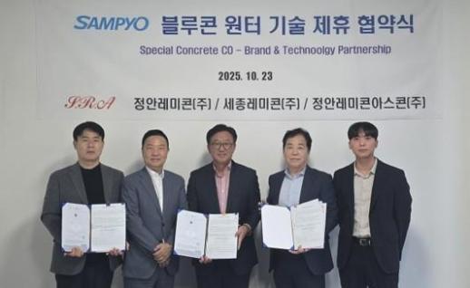 삼표산업은 정안레미콘, 세종레미콘, 정안레미콘아스콘과 지난달 23일 특수 콘크리트 브랜드 '블루콘 윈터' 기술제휴 협약을 체결했다고 5일 밝혔다.
