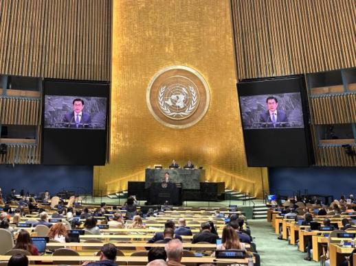 정연두 외교부 외교전략정보본부장이 27일(현지시간) 미국 뉴욕에서 열린 제11차 NPT 평가회의에서 기조연설을 하고 있다.