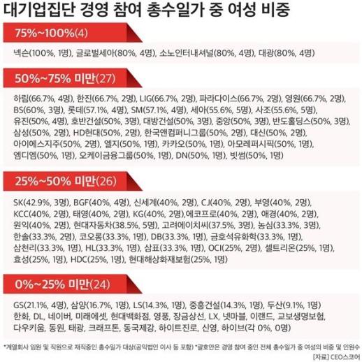 대기업 총수일가 여성 경영 참여 비중 37%… 자녀 세대서 늘어