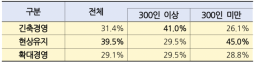 대기업 40%, 내년 긴축경영… "투자·채용 축소" 2026년도 경영계획을 수립한 기업 중 절반가량이 내년 투자와 채용 계획을 올해 수준에 그칠 것이라는 조사 결과가 나왔다. 대기업들은 내년 '긴축경영'을 위해 '인력운용 합리화'에 나설 전망이다. 한국경영자총협회가 30인 이상 기업 229개사(응답 기업 기준) 최고경영자(CEO) 및 임원을 대상으로 '2026년 기업 경영전망 조사'를 실시한 결과, 2026년 경영계획을 수립한 기업 39.5%가 내년 경영계획 기조를 '현상유지'로 응답했다. '긴축경영'과 '확대경영'은 각각 31.4% 2025-11-30 12:00:00 -
