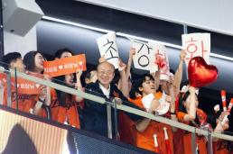 김승연 한화 회장, 준우승 '이글스 선수단'에 오렌지 휴대폰 쐈다 김승연 한화그룹 회장이 지난 4일 한화이글스의 2025 한국시리즈 준우승을 축하하며, 올 시즌 끝까지 투혼을 보여준 선수단과 스태프 등 총 60명에게 이글스의 상징색인 오렌지 색 휴대전화를 선물했다. 5일 한화그룹에 따르면 준우승 직후였던 지난달 31일 김 회장은 '세상에서 가장 뜨겁게 응원해주신 여러분을 잊지 않겠습니다. 그 사랑 가슴에 품고 다시 날아오르겠습니다'라는 현수막을 통해 팬들의 열정과 응원에 감사의 뜻을 전했다. 이어 4일엔 선수단에게 선물과 함께 "한국시리즈 준우승을 진심으 2025-11-05 15:29:30 -