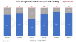 삼성, 국내 스마트폰 시장 점유율 81%… "4분기 애플과 격차 좁혀질 듯" 삼성전자가 2분기 연속 국내 스마트폰 시장에서 점유율 80%를 넘었다. 12일 카운터포인트리서치에 따르면 지난 3분기 기준 삼성의 국내 스마트폰 점유율은 81%다. 지난해 3분기보다는 1%포인트(P) 올랐다. 다만 직전 분기 대비로는 3%P 떨어졌다. 애플의 올해 3분기 점유율은 18%로 전년 대비로는 1%P 줄어든 반면, 전 분기 대비로는 2%P 높아졌다. 삼성은 갤럭시 폴드7의 흥행과 올해 2분기 출시한 갤럭시 A36 같은 중저가 모델의 수요가 이어지며 성장세를 이어갔다. 애플은 아이폰17 시리즈가 인기를 끌며 전 2025-12-12 13:42:09 -