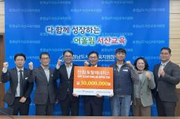 한화토탈에너지스, 서산 고교생에 장학금 전달...지역사회와 상생 한화토탈에너지스가 서산지역 고등학생들에게 장학금을 후원하며 지역사회 미래 육성에 나섰다. 한화토탈에너지스는 27일 서산교육지원청에서 노성주 한화토탈에너지스 커뮤니케이션담당 상무, 김지용 서산교육지원청 교육장 등 관계자들이 참석한 가운데 ‘2025년 지역 고교생 희망 나눔 장학금 전달식’을 개최했다고 밝혔다. 한화토탈에너지스는 이번 장학금 전달식을 통해 서산지역 8개 고등학교 학생 30명에게 각각 100만원씩 총 3천만원의 장학금을 지원했다. 한화토탈에너지스의 장학금 지원 사업은 2025-10-27 13:51:23 -