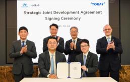 달 탐사·휴머노이드 로봇 시장 개척...현대차, 日 도레이그룹과 미래 모빌리티 협력 현대차그룹이 일본 도레이그룹과 미래 모빌리티 분야에서 공동 개발을 본격화한다. 현대차그룹은 지난 24일 도레이그룹과 전략적 공동 개발 계약(Strategic Joint Development Agreement)을 체결했다고 27일 밝혔다. 이날 체결식은 서울 양재동 현대차그룹 본사 사옥에서 열렸으며, 김흥수 현대차그룹 GSO 본부장(부사장), 홍승현 기초소재연구센터장(상무), 테라다 미키 도레이그룹 복합재료사업본부 부문장, 김영섭 도레이첨단소재 사장 등 양사 관계자들이 참석했다. 현대차그룹은 지난해 4월 도레이그룹과 모빌리 2025-10-27 09:36:54 -