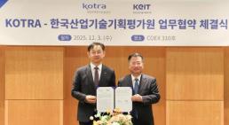 코트라, 첨단 기술 R&D 해외 진출 돕는다 무역 투자 기관과 연구·개발(R&D) 지원 기관이 글로벌 진출을 위해 힘을 모은다. 대한무역투자진흥공사(코트라)와 한국산업기술기획평가원(KEIT)은 3일 서울 강남구 코엑스에서 'R&D 수행기업의 해외 진출과 성과 확산을 위한 업무협약(MOU)'을 체결했다. MOU 체결을 통해 AI 전환(AX), 로봇 등 첨단 분야 R&D 수행 기업의 해외진출 협력망을 촘촘하게 했다. 양 기관은 국가 지원 R&D 성과물이 국내 뿐 아니라 해외 시장에서 실질적 사업화로 이어지도록 지원하자는 데 뜻을 모았다. 2025-12-03 15:00:00 -