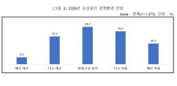 소상공인, 내수부진에 절망..."월평균 300만원도 못 벌어" 소상공인의 절반 이상이 내수 부진과 물가 상승으로 지난해 월평균 영업이익이 300만 원에도 미치지 못하는 것으로 나타났다. 13일 소상공인연합회가 발표한 '2026년도 소상공인 신년 경영 실태조사 결과'에 따르면 소상공인의 42.7%가 올해 경영환경이 '악화'할 것이라 답변했다. '매우 악화' 16.5%, '다소 악화' 26.2%, '현재 수준 유지' 29.7%, '다소 개선' 22.1%, '매우 개선' 5.5%로 집계됐다. 가장 부담이 클 것으로 예상되는 비용 항목(복수 응답)은 2026-01-13 17:38:11 -