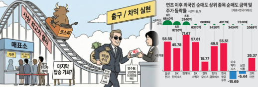 코스피 '최고치 랠리'의 역설…외국인, 올해 9조 팔아 '차익 실현' 코스피가 연일 사상 최고치 랠리를 이어가고 있지만 외국인은 올해 들어 9조원 넘게 팔아치우면서 기관과 엇갈린 행보를 보이고 있다. 22일 한국거래소에 따르면 외국인은 올해 초부터 이달 20일까지 유가증권시장에서 9조1560억원을 순매도했다. 이는 지난해 연간 코스피 순매도액(4조6550억원)의 2배에 달하는 수준이다. 지수가 올해 37% 넘게 급등하자 대대적인 차익 실현에 나선 것으로 풀이된다. 외국인의 매도세는 반도체 대형주로 쏠렸다. 외국인은 올해 들어서만 59% 급등하며 사상 첫 '19만전자'를 기 2026-02-22 10:58:03 -