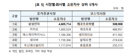 지난해 상장사 주식 소유자 1456만명…1년 새 33만명 늘었다 증시 활황에 국내 주식 투자자가 1년 새 33만명이 늘었다. 주식 투자자들이 가장 많이 보유한 주식은 삼성전자로, 국민 4명 중 1명꼴로 나타났다. 18일 한국예탁결제원이 발표한 '2025년 12월 결산 상장법인 주식 소유자 현황'에 따르면 지난해 12월 결산 상장법인 2727사의 주식소유자 수는 중복 소유자를 제외하고 1455만8479명으로 집계됐다. 상장법인은 전년 대비 1.5% 증가했고, 소유자는 2.3% 확대됐다. 전체 소유자가 보유한 주식 수는 약 1174억주로, 1인당 평균 8066주를 보유한 것으로 나타났다. 시 2026-03-18 11:30:45 -