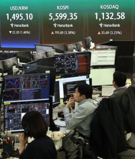 [마감시황] 코스피 5500선 탈환…2.74% 상승마감 24일 코스피가 장 중 낙폭을 회복하며 상승 마감했다. 23일(현지시간) 도널드 트럼프 미국 대통령이 이란과의 대화 진전을 언급하며 양측 간 협상 가능성이 공식화되었음에도 코스피는 여전히 큰 변동성을 보이고 있다. 이날 한국거래소에 따르면 코스피는 전거래일 대비 148.17p(2.74%) 오른 5553.92에 거래를 마감했다. 그러나 장 중 한 때 상승폭을 반납하며 전 거래일 대비 10.58p(0.20%) 내린 5395.17까지 내려앉기도 했다. 지수는 이후 낙폭을 회복하며 상승 전환했다. 이날 상승세는 개인이 이끌었 2026-03-24 16:00:09 -