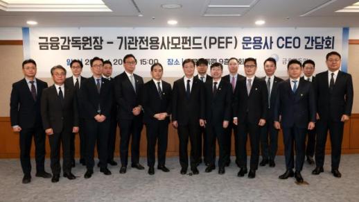 금감원장, 사모펀드 CEO 간담회…"불법엔 엄정 대응, 생산적 금융 역할 강화해야" 금융감독원이 기관전용 사모펀드(PEF) 업계 최고경영자(CEO)들과 만나 시장 신뢰 회복과 모험자본 공급 확대를 주문했다. 일부 PEF 운용사의 불법·부당 행위에 대해서는 법과 원칙에 따른 엄정 대응 방침을 재확인하는 한편, 업계의 자율규제 역량과 사회적 책임 강화를 강조했다. 이찬진 금융감독원장은 20일 오후 서울 여의도 금융감독원 중회의실에서 12개 기관전용 사모펀드 운용사 CEO들과 간담회를 열고 PEF의 사회적 역할과 책임, 생산적 금융 활성화 방안 등을 논의했다. 국내 PEF 수는 2004년 2개 2026-01-20 15:00:00 -