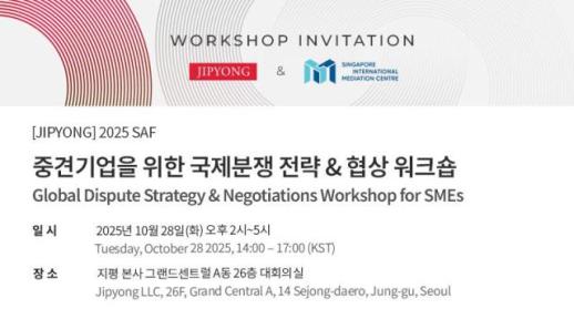 [로펌라운지] 지평, SIMC와 '중견기업을 위한 국제분쟁 전략 워크숍' 열어 법무법인(유) 지평은 오는 28일 오후 2시 싱가포르국제조정센터(SIMC)와 공동으로 '중견기업을 위한 국제분쟁 전략&협상 워크숍'을 개최한다. 워크숍은 지평 본사 그랜드센트럴 26층 대회의실에서 김지홍 지평 대표변호사의 개회사를 시작으로, 두 개의 세션으로 구성된다. 세미나로 진행되는 첫 번째 세션은 지평 국제분쟁팀장 김진희 외국변호사가 '중견기업의 국제분쟁 전략'을 주제로 발표한다. 두 번째 세션은 참여형 워크숍으로 참가자들이 국제조정을 직접 체험하는 기회를 제공하며, SIMC 2025-10-15 14:06:12 -