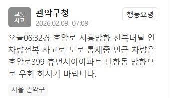 경북 구미 구포~인동, 폐기물 처리로 양방향 도로 차량 통행 제한…"3시간 소요 예정" 경북 구미시 구포동에서 인동동 양방향 도로가 통제되고 있다. 구미시는 "구포~인동 양방향 도로(구포동 625-1번지) 폐기물 처리로 차량 통행이 제한 중이다"라는 내용의 재난문자를 발송했다. 이어 "3시간 소요 예정이니 우회해달라"고 당부했다. 2026-02-09 17:13:52 -