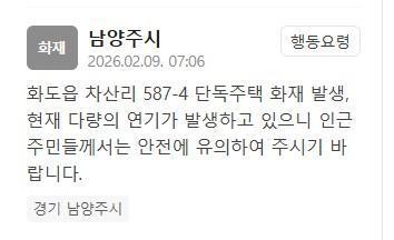 인천 계양구 하야동서 화재…"연기 다량 발생" 인천 계양구에서 화재가 발생했다. 계양구청은 9일 "오늘 오후 3시 26분께 인천 계양구 하야동 5-3 인근에서 화재가 발생해 연기가 다량 발생 중이다"라는 내용이 담긴 재난문자를 발송했다. 이어 "인근 주민은 추가 피해에 유의 바란다"고 당부했다. 2026-02-09 15:49:39 -