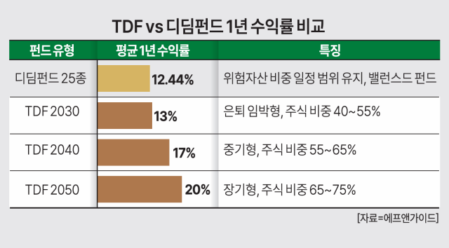 같은 기간 국내 주요 TDF 1년 평균 수익률은 약 16% 수준으로 집계됐다. 이는 디딤펀드보다 약 4% 높은 수준으로, 퇴직연금 시장 내 우위를 이어갔다.