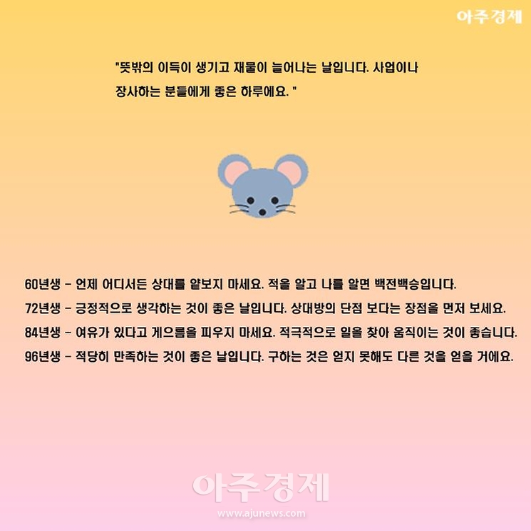 ▶쥐띠 오늘의 운세 "빠른 결정과 판단이 필요한 날입니다. 망설이지 말고 예스, 노를 분명히 하세요. "