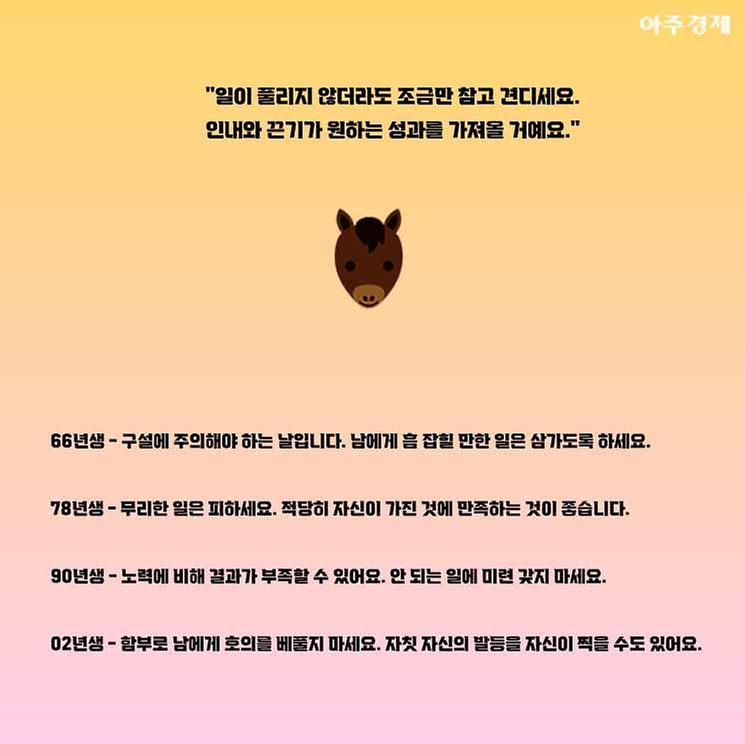 ▶말띠 오늘의 운세 "백 마디 말보다는 한 가지 행동이 필요한 날입니다. 다만 버릴 것은 버리도록 하세요. "