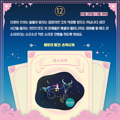 12. [별자리별 오늘의 운세] 염소자리 (12월 25일∼1월 19일)